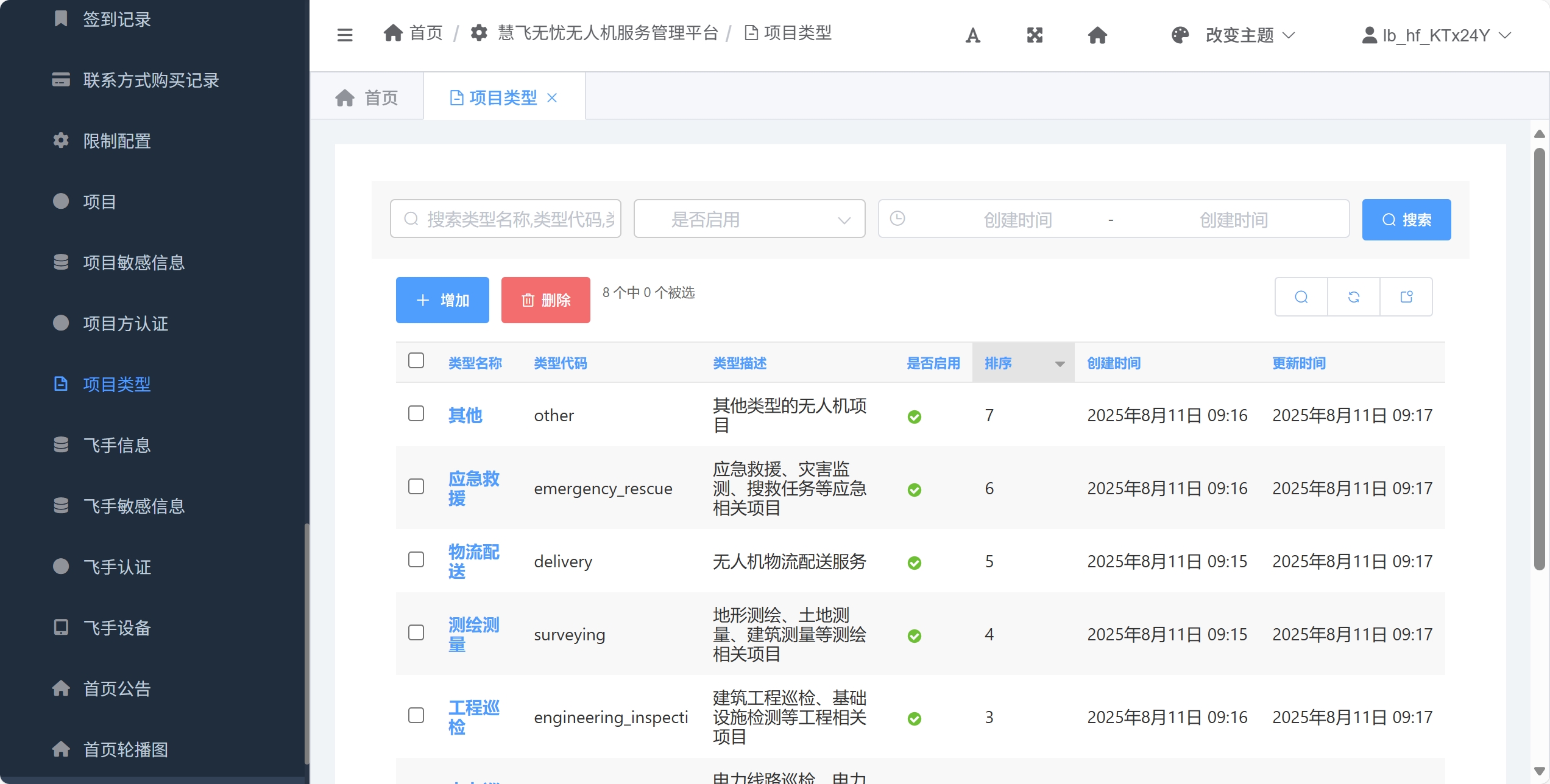 用户与认证管理:查看用户列表及上线记录,审核飞手 / 项目方认证(需提交身份证、CAAC 证件 / 营业执照),保障用户身份真实性。